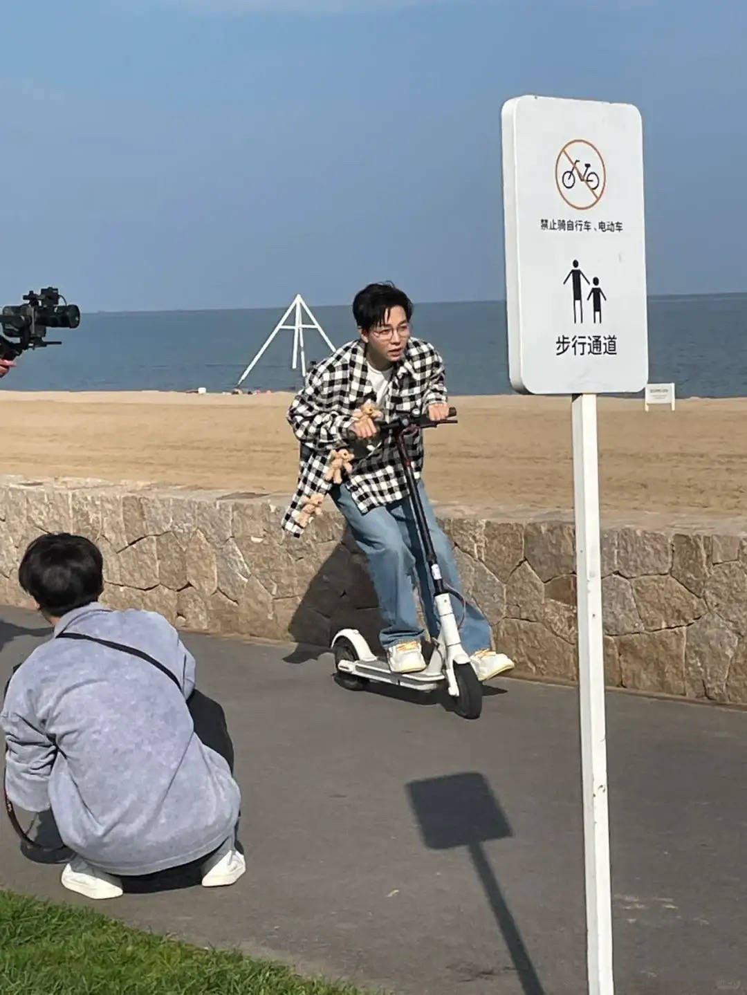 生活里的胡夏,依然像个大男孩一样。他在海边度假的时候,骑滑板车的模样太帅了。穿一件黑白格子的衬衫、牛仔裤,那么阳光干净。